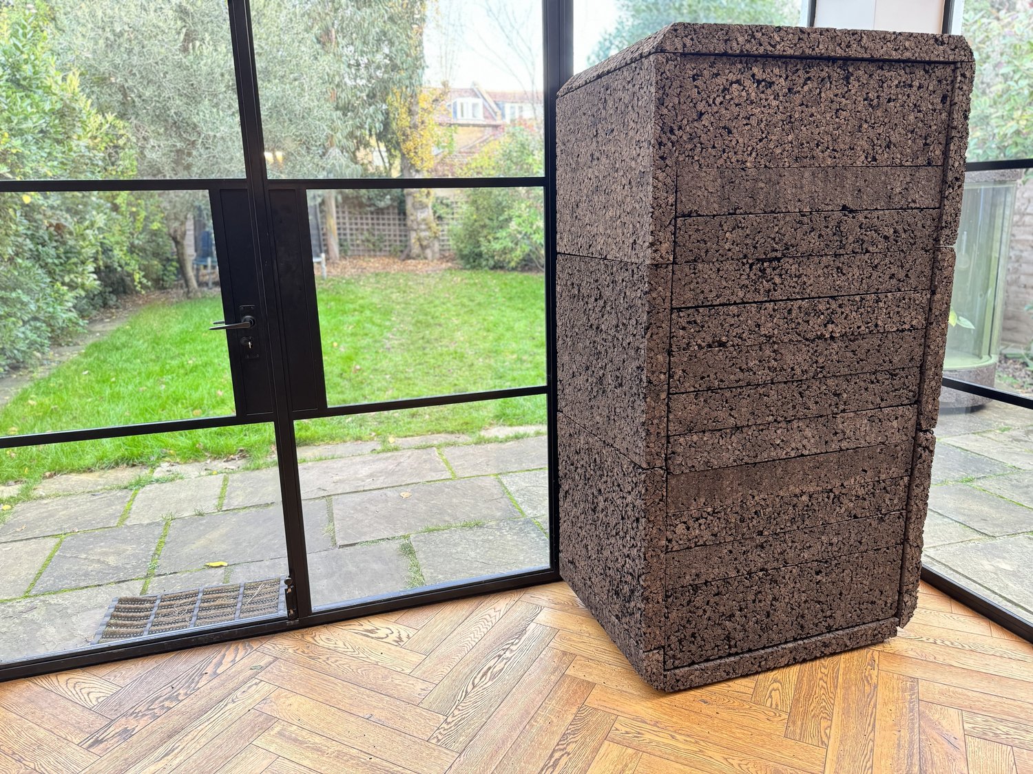 HIVE is engineered to live anywhere, and created with sustainable, recycled and recyclable materials. Encased in super insulating 100% natural, chemical free and sustainable cork, HIVE is waterproof and highly fire resistant. No virgin plastic is used anywhere in HIVE. Electronic and mechanical parts are 100% recyclable. Equipped with wifi and bluetooth, HIVE works on or off-grid, 24/7, whatever nature throws at it.